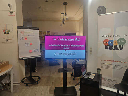 Im Rahmen des Projekts Vielfalt im Dialog – mit EBAV fand am 26. September unser Tagesworkshop “Das ist kein harmloser Witz – Antiasiatischer Rassismus in Kinderliedern & Spielen”